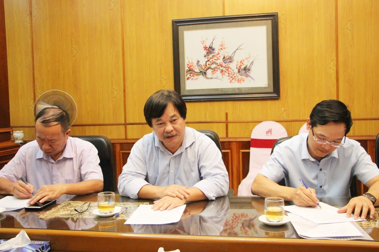 Ông Thân Đức Việt, Tổng Giám đốc Tổng Công ty May 10 (ngồi giữa) phát biểu tại cuộc họp